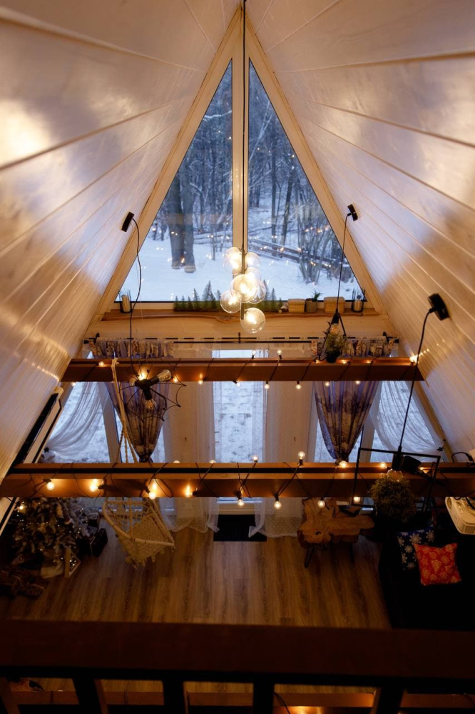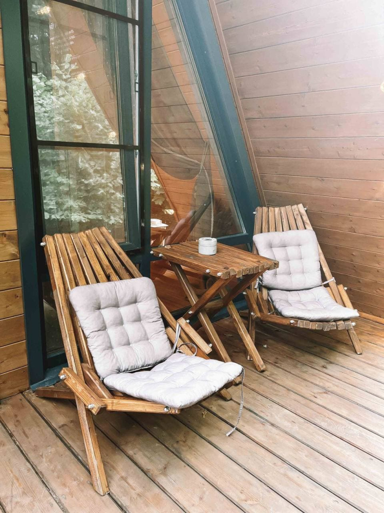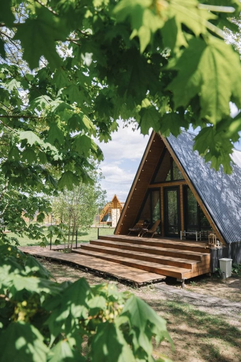 В нашем уютном семейном объекте размещения 2 а-фрэйма в бохо-стиле, утопающие в лесной чаще.