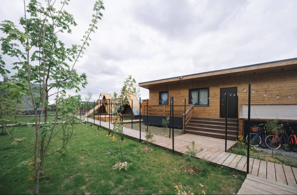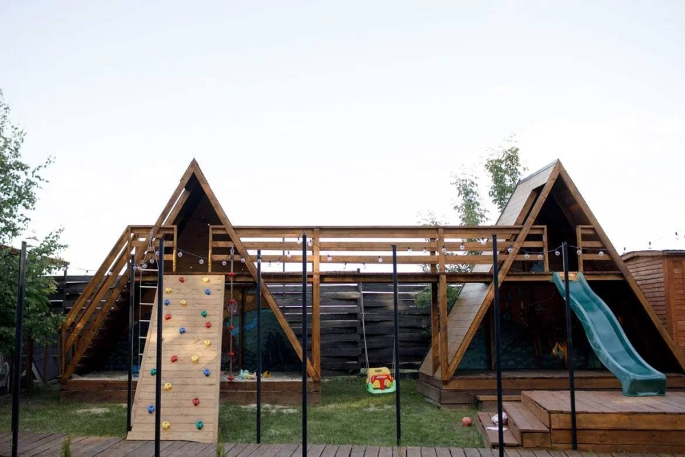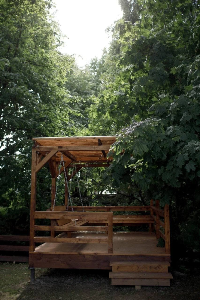 ⁃ парящие над оврагом веранды с удобными качелями и обеденной зоной;
