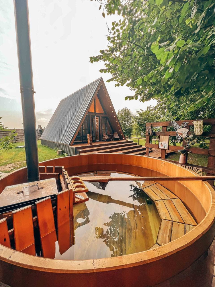 У озера В лесу У Воды Можно с Питомцем Горячий чан Мангальная зона Рыбалка Велопрогулки SUP-серф Кофемашина Джакузи Микроволновая печь Костровая зона Настольные игры Чайник Холодильник Водоем Детская площадка Детская кроватка по запросу Гамаки и качели на общей территории Барбекю зона Парковка Мобильный интернет WI-FI